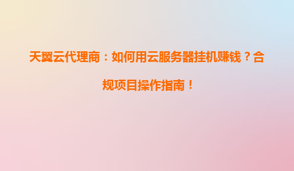 2025-05-11天翼云代理商:如何用云服务器挂机赚钱?合规项目操作指南! 一、云服务器挂机赚钱的原理与合规性 云服务器挂机赚钱的本质是通过部署自动化程序或服务,利用服务器资源(如计算能力、带宽、存...