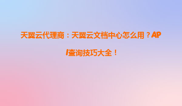 2025-05-11天翼云代理商:天翼云文档中心使用指南与API查询技巧大全 一、天翼云文档中心的核心价值与使用场景 作为天翼云代理商,熟练掌握天翼云文档中心是提升服务能力的关键。该平台提供完整的产品说...