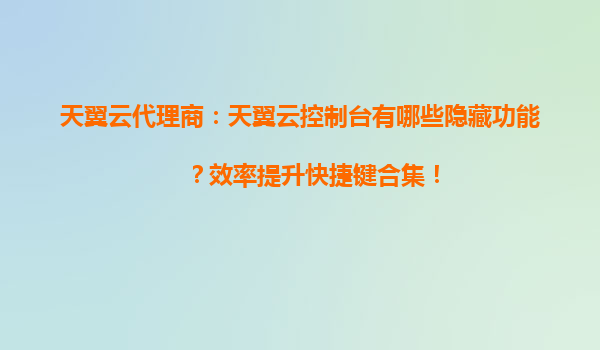 2025-05-11天翼云控制台隐藏功能与效率提升秘籍:代理商如何助力企业高效上云 一、天翼云控制台五大隐藏功能解析 1.1资源拓扑可视化(Ctrl+T) ...