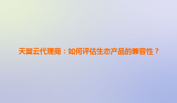 2025-05-01天翼云代理商如何评估生态产品的兼容性? 一、生态产品兼容性评估的重要性 在数字化转型的浪潮中,企业选择云服务时不仅关注基础设施性能,更重视生态产品的协同能力。作为天翼云代理商,评估生态...