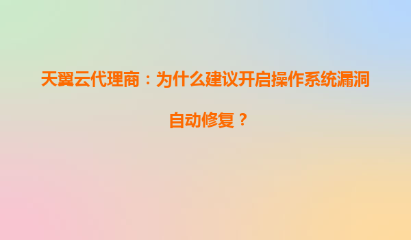 2025-04-26为什么建议开启操作系统漏洞自动修复?天翼云代理商的深度解析 一、操作系统漏洞的潜在风险与修复必要性 在数字化时代,操作系统作为承载企业核心业务的基础环境,其安全性直接影响数据资...