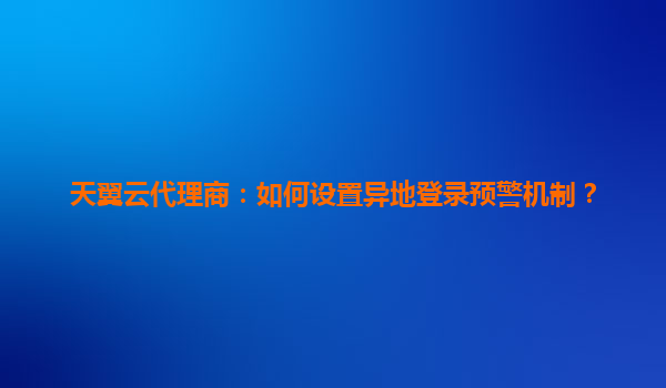 2025-04-26天翼云代理商异地登录预警机制设置指南 一、异地登录预警机制的重要性 在数字化业务快速发展的背景下,企业云端资产面临的安全威胁日益复杂。异地登录预警机制通过实时监测账户登录行为,...