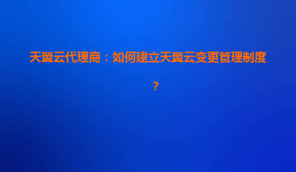 2025-04-18天翼云代理商如何建立高效变更管理制度 一、变更管理制度的核心价值 随着企业数字化转型加速,天翼云代理商需通过规范化的变更管理确保云服务稳定性。天翼云提供的分布式架构与智能运维系统,叠加代理...