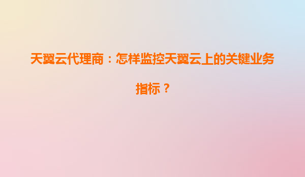 2025-04-18天翼云代理商:如何高效监控天翼云上的关键业务指标? 一、监控关键业务指标的必要性 作为天翼云代理商,监控云上关键业务指标是保障客户业务连续性、优化资源利用率和提升服务质量的核心任务...