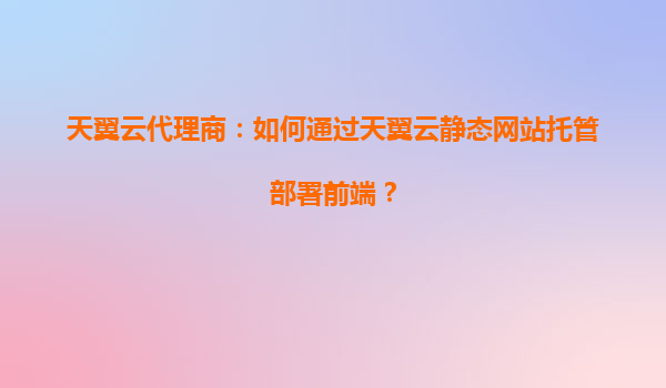 2025-04-07如何通过天翼云静态网站托管部署前端? 一、天翼云静态网站托管的优势 天翼云作为国内领先的云服务提供商,其静态网站托管服务结合了高性能、高可靠性和低成本的特点,尤其适合前端项目的快速部署。以...