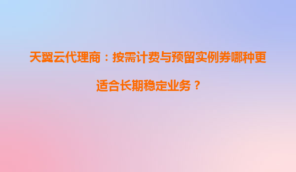 2025-04-01天翼云代理商:按需计费与预留实例券的长期业务适配分析 一、长期稳定业务的资源需求特点 长期稳定业务通常具有以下特征: 1.资源使用量可预测性强,流量波动较小; ...