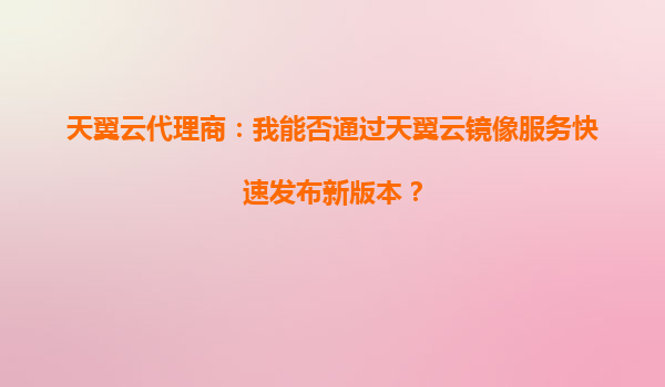 2025-10-14天翼云代理商:如何通过镜像服务快速发布新版本? 一、天翼云镜像服务的核心优势 天翼云镜像服务(ImageService)作为云计算基础设施的核心组件,为代理商及企业用户提供了高效、安全的镜像管理能力...