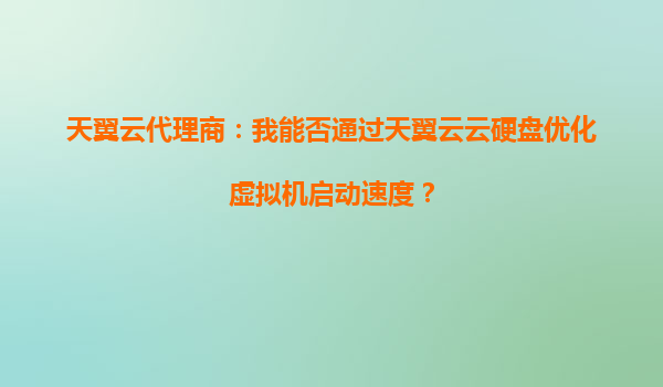 2025-10-04天翼云代理商:如何通过天翼云云硬盘优化虚拟机启动速度? 引言 在云计算时代,虚拟机的启动速度直接影响业务效率和用户体验。作为天翼云代理商,我们经常收到...