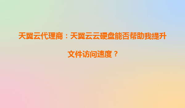 2025-10-04天翼云代理商:天翼云云硬盘如何助力企业提升文件访问速度?一、云硬盘的核心价值:性能与效率在数字化时代,企业对文件访问速度的需求日益增长,尤其是高频数据交...