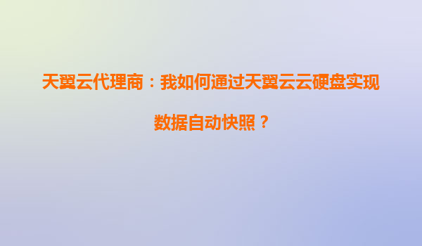 2025-10-04天翼云代理商指南:如何通过天翼云云硬盘实现数据自动快照 一、天翼云云硬盘自动快照的核心价值 在数字化转型浪潮中,数据已成为企业核心资产。天翼云云硬盘提供的自动快照功能,通过以...