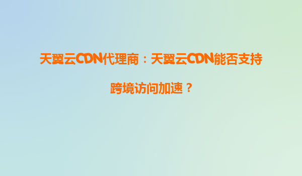 2025-10-02> 天翼云CDN代理商:天翼云CDN能否支持跨境访问加速? 一、天翼云CDN的跨境加速能力 天翼云CDN作为中国电信旗下的云计算服务品牌,依托中国电信强大的全球网络基础设施,具备出色的跨境...