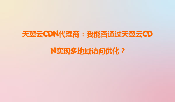 2025-10-01天翼云CDN代理商:如何通过天翼云CDN实现多地域访问优化? 一、引言 在数字化时代,用户对网络访问速度和稳定性的要求越来越高,尤其是跨地域访问的场景下,延迟和带宽问题可能直接影响用户体验。作为天翼...