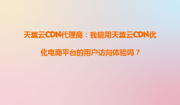 2025-10-01天翼云CDN代理商:我能用天翼云CDN优化电商平台的用户访问体验吗? 一、电商平台为何需要CDN加速? 在数字化时代,电商平台的用户体验直接影响转化率和品牌口碑。页面加载速度每延迟1秒,可能...