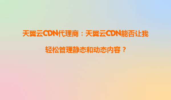 2025-10-01天翼云CDN代理商:天翼云CDN能否让我轻松管理静态和动态内容? 一、天翼云CDN的核心优势 天翼云CDN作为中国电信旗下的内容分发网络服务,凭借其强大的基础设施和技术能力,为用户提供了高效、稳定...