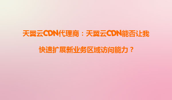 2025-10-01天翼云CDN代理商:天翼云CDN能否让我快速扩展新业务区域访问能力? 引言 在数字化时代,企业业务的快速扩展网络访问能力成为竞争的关键。无论是电商平台、在线...