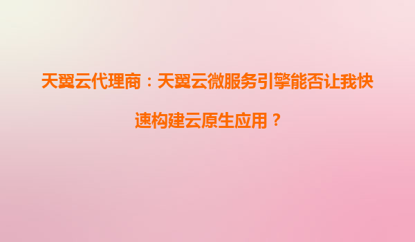 2025-09-30天翼云代理商:天翼云微服务引擎如何助力快速构建云原生应用? 一、云原生应用的发展趋势与挑战 随着数字化转型的加速,云原生技术因其弹性、敏捷性和可扩展性...
