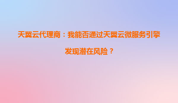 2025-09-29天翼云代理商视角:如何通过天翼云微服务引擎发现潜在风险一、引言:数字化转型下的风险管理需求随着企业数字化进程加速,微服务架构因高灵活性成为主流选择,但多...