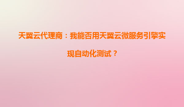 2025-09-28天翼云代理商指南:如何通过天翼云微服务引擎实现高效自动化测试? 一、天翼云微服务引擎概述 天翼云微服务引擎(CT-MSE)是天翼云提供的一站式微服务治理平台,支持SpringCloud、Dubbo...