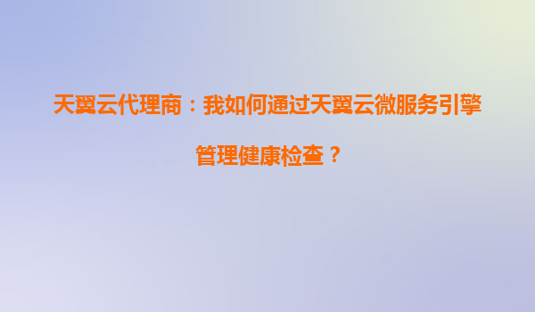 2025-09-28天翼云代理商:如何通过天翼云微服务引擎高效管理健康检查 一、微服务健康检查的重要性 在分布式微服务架构中,服务的稳定性直接关系到业务连续性。健康检查作...