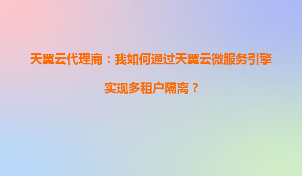 2025-09-28天翼云微服务引擎:实现高效多租户隔离的最佳实践 一、天翼云平台的优势背景 作为中国电信旗下的云计算服务品牌,天翼云凭借国家级基础设施和央企级安全保障,为企业和开发者提供了稳定可靠的云服务环境。...