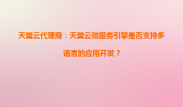 2025-09-24天翼云代理商:天翼云微服务引擎是否支持多语言的应用开发? 一、天翼云微服务引擎简介 天翼云微服务引擎(CTYunMicroserviceEngine)是中国电信天翼云推出的一款面向企业级用户的微服务治理平台。它...