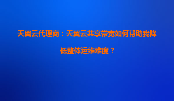 2025-09-23天翼云代理商:天翼云共享带宽如何帮助我降低整体运维难度? 一、引言:数字化时代的网络运维挑战 随着企业数字化转型加速,稳定高效的网络连接成为业务持续运行的基石。然而,传统网络...