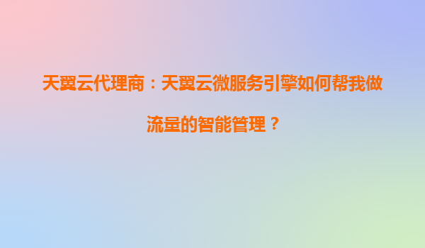 天翼云代理商:天翼云微服务引擎如何帮我做流量的智能管理? 一、天翼云微服务引擎的核心能力与流量管理 天翼云微服务引擎(CT-CloudMicroserviceEngine)作为企业级分布式服务治理平台,通过服...