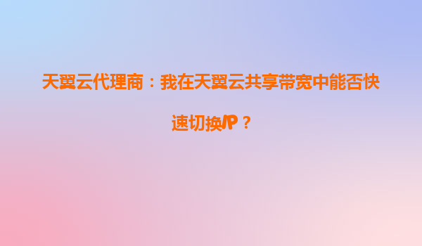 天翼云代理商解析:如何在天翼云共享带宽中快速切换IP? 一、共享带宽与IP切换的核心需求 在企业上云或开展网络业务时,共享带宽因其成本优势成为热门选择。然而,某些...