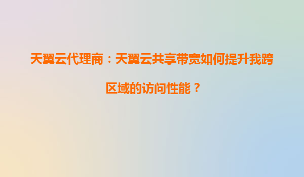 2025-09-22天翼云代理商:天翼云共享带宽如何提升我跨区域的访问性能? 一、跨区域访问性能的挑战与需求 在数字化业务快速发展的背景下,企业往往需要跨区域部署IT资源以实现业务覆盖。然而,传统网络架构在跨区...