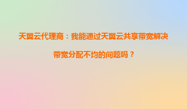 2025-09-21天翼云代理商:我能通过天翼云共享带宽解决带宽分配不均的问题吗? 在当今数字化快速发展的时代,企业对带宽的需求日益增长,尤其是在高并发访问或突发流量场景下,传统的带宽分配方式往往难以满足业务需求。带...