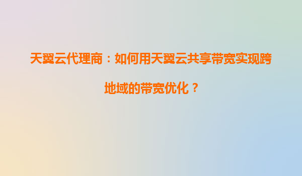 2025-09-18天翼云代理商:如何用天翼云共享带宽实现跨地域的带宽优化? 一、天翼云共享带宽的技术优势 天翼云作为中国电信旗下的云计算服务品牌,依托运营商级的网络基础设施,其共享带宽服务具备以下核...