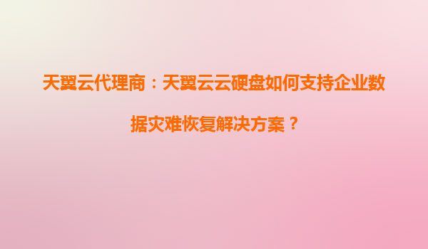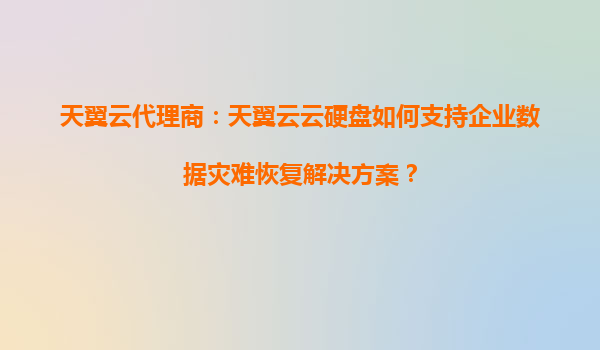 天翼云代理商解析:天翼云云硬盘如何赋能企业数据灾难恢复解决方案 一、企业数据灾难恢复的挑战与需求 在数字化转型浪潮中,企业数据已成为核心资产。然而,硬件故障、网络攻击、人为误...
