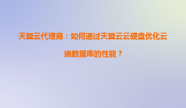 2025-09-17天翼云代理商:如何通过天翼云云硬盘优化云端数据库的性能 引言 在数字化时代,云端数据库已成为企业数据存储和处理的核心。然而,随着数据量的不断增加,数据库性能的优化变得尤为重要。天翼云作为...