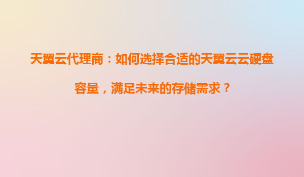 2025-09-17天翼云代理商:如何选择合适的天翼云云硬盘容量,满足未来的存储需求? 一、云硬盘选型的重要性 在数字化转型浪潮中,企业数据呈现爆发式增长,选择合适的云硬盘容量直接影响业务连续性...