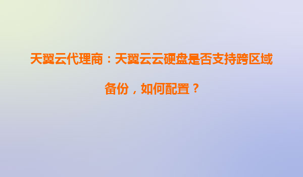 2025-09-16天翼云代理商指南:天翼云云硬盘跨区域备份功能详解及配置步骤 一、天翼云云硬盘跨区域备份概述 天翼云作为中国电信旗下的云计算服务品牌,其云硬盘(ElasticBlockSto...